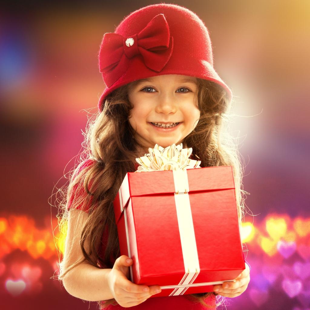 » Wallpaper Smiling blue-eyed girl with a big gift in her hands