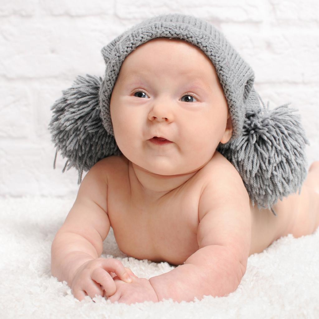 Wallpaper Smiling baby in gray cap with buboes