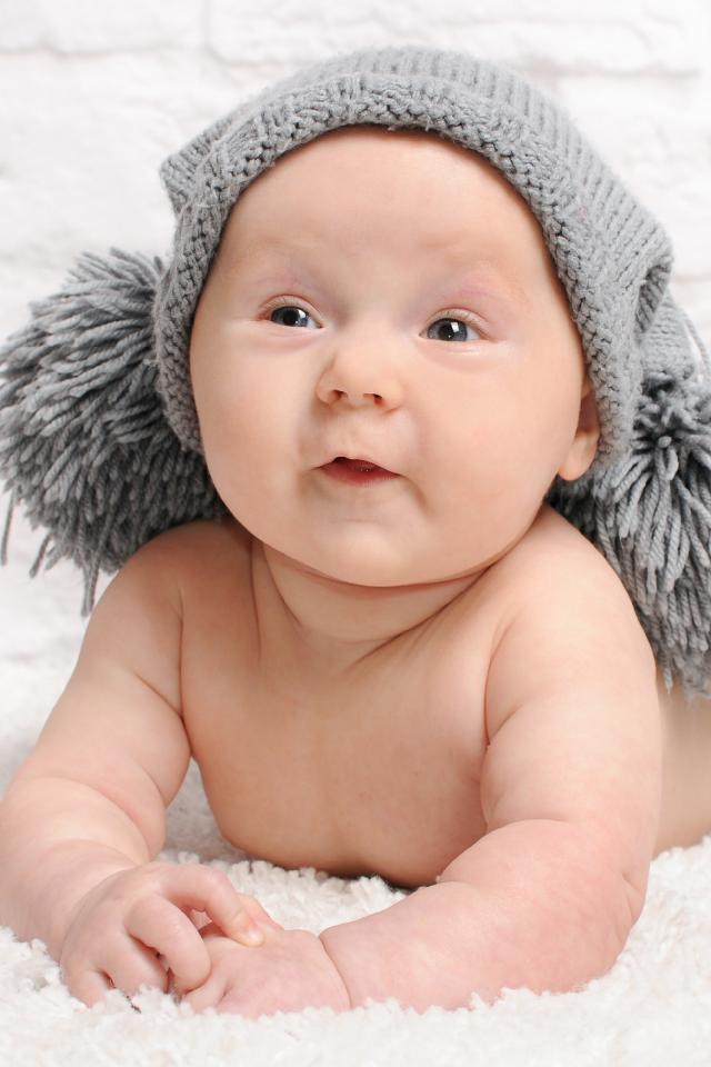 Wallpaper Smiling baby in gray cap with buboes