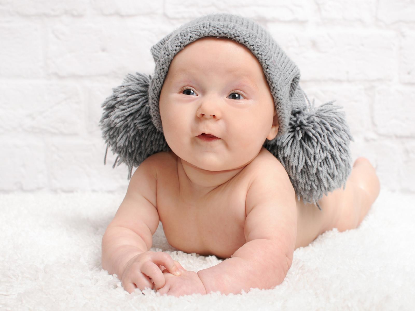 Wallpaper Smiling baby in gray cap with buboes