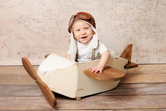 Wallpaper Smiling little boy in a toy airplane