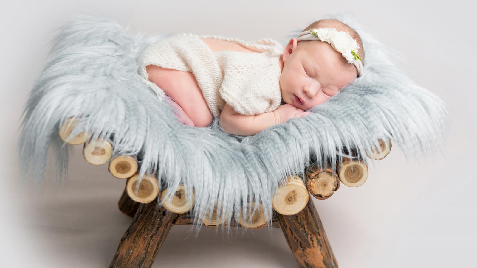 Wallpaper Thoracic sleeping child lies on a wooden bed