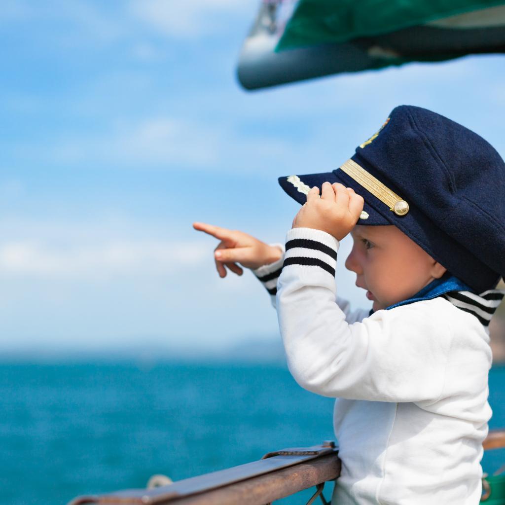 Wallpaper A little boy in the form of a captain on a ship