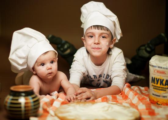 Wallpaper Two little boys in the chef`s hats in the kitchen