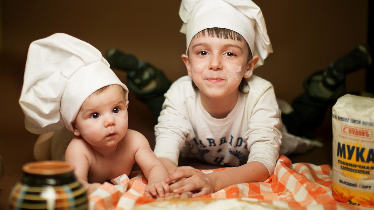 Wallpaper Two little boys in the chef`s hats in the kitchen