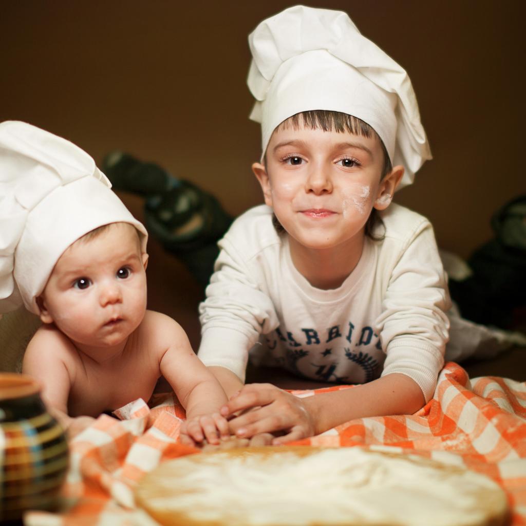 Wallpaper Two little boys in the chef`s hats in the kitchen