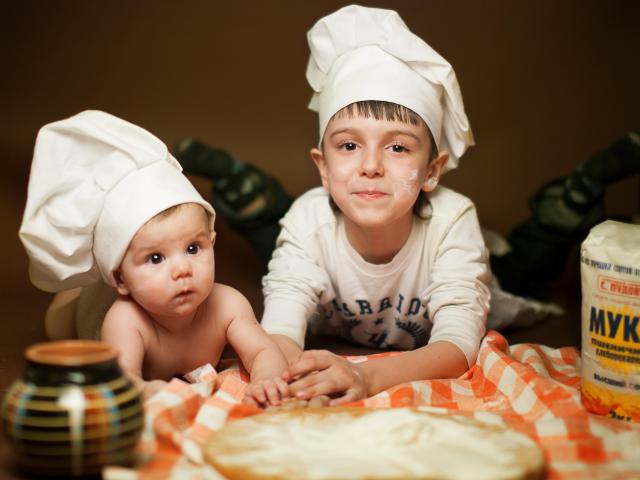Wallpaper Two little boys in the chef`s hats in the kitchen