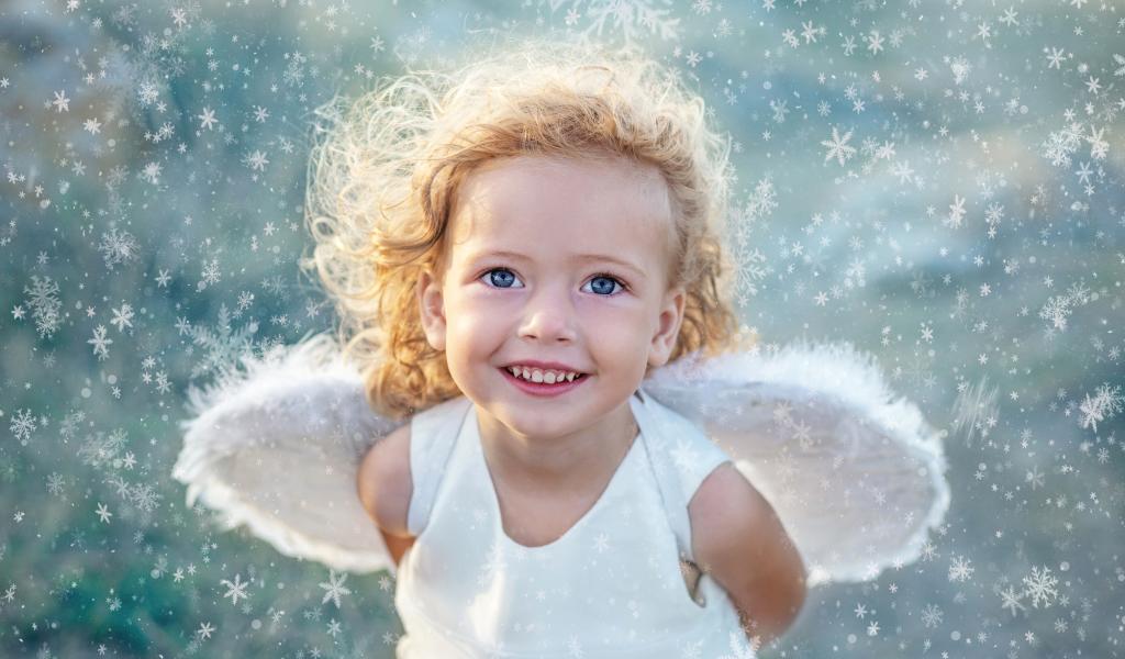 Wallpaper Beautiful blue-eyed girl with angel wings