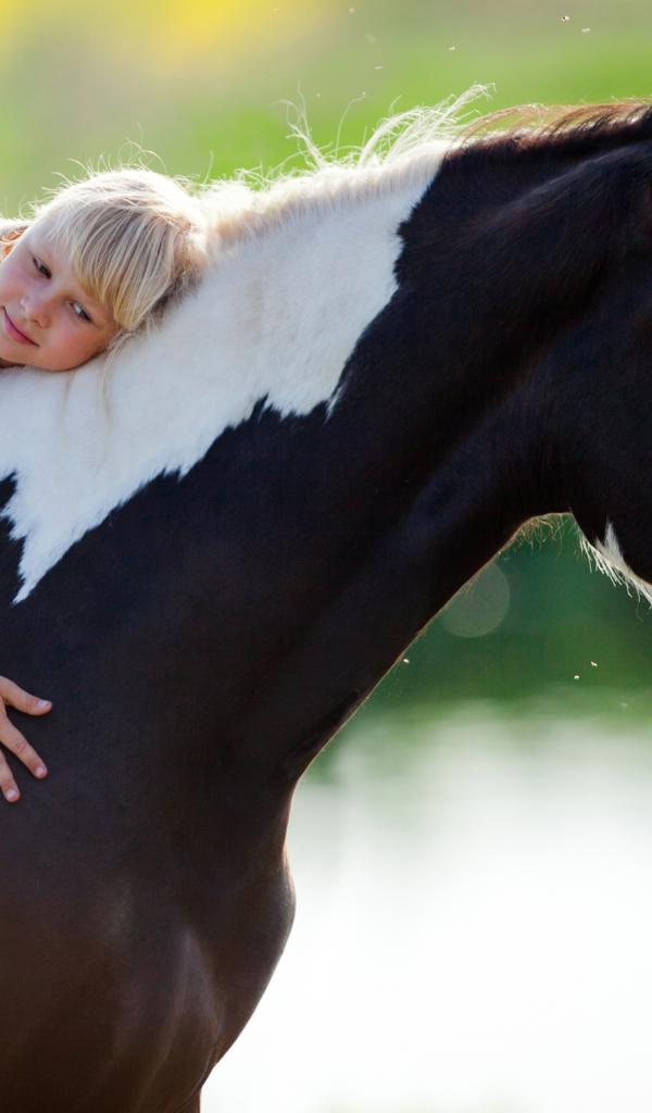 Wallpaper Little blond girl on horseback