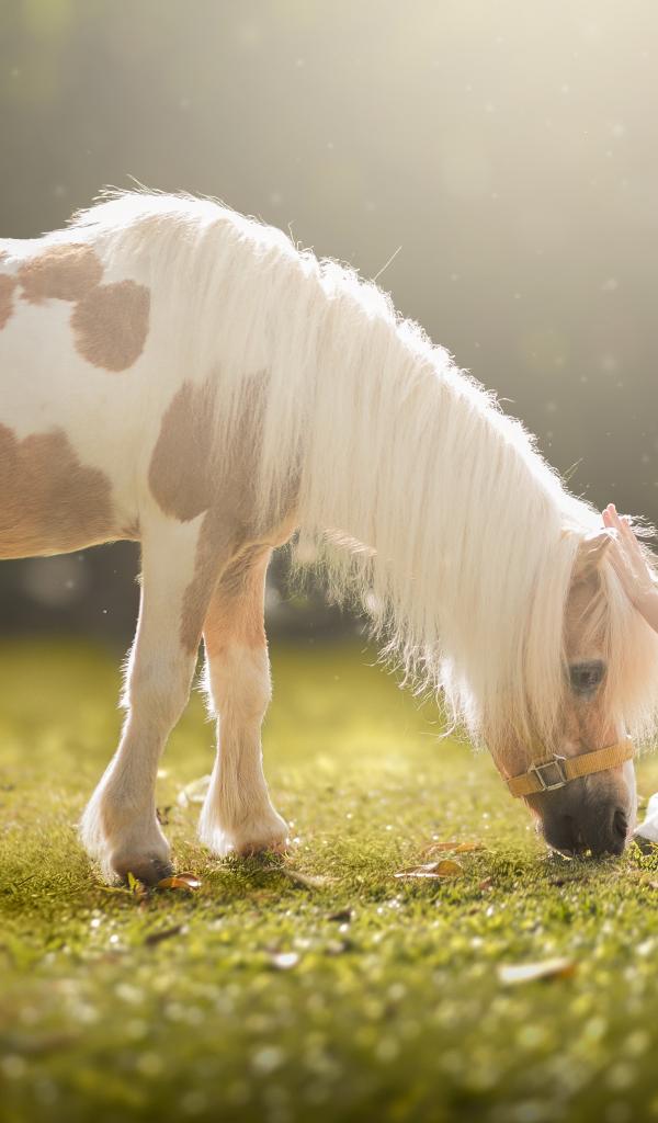 Wallpaper Little girl in a white dress with a pony