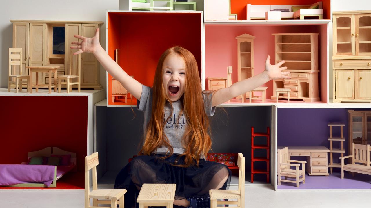 Wallpaper Little girl with toy furniture
