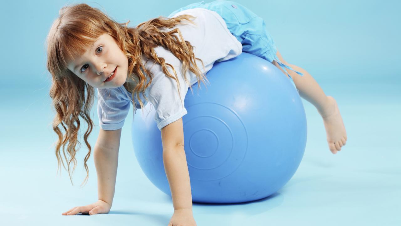 Wallpaper Little girl with a big blue ball