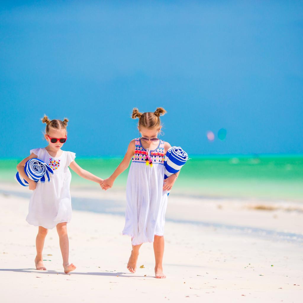 Wallpaper Two little girls are walking along the sand