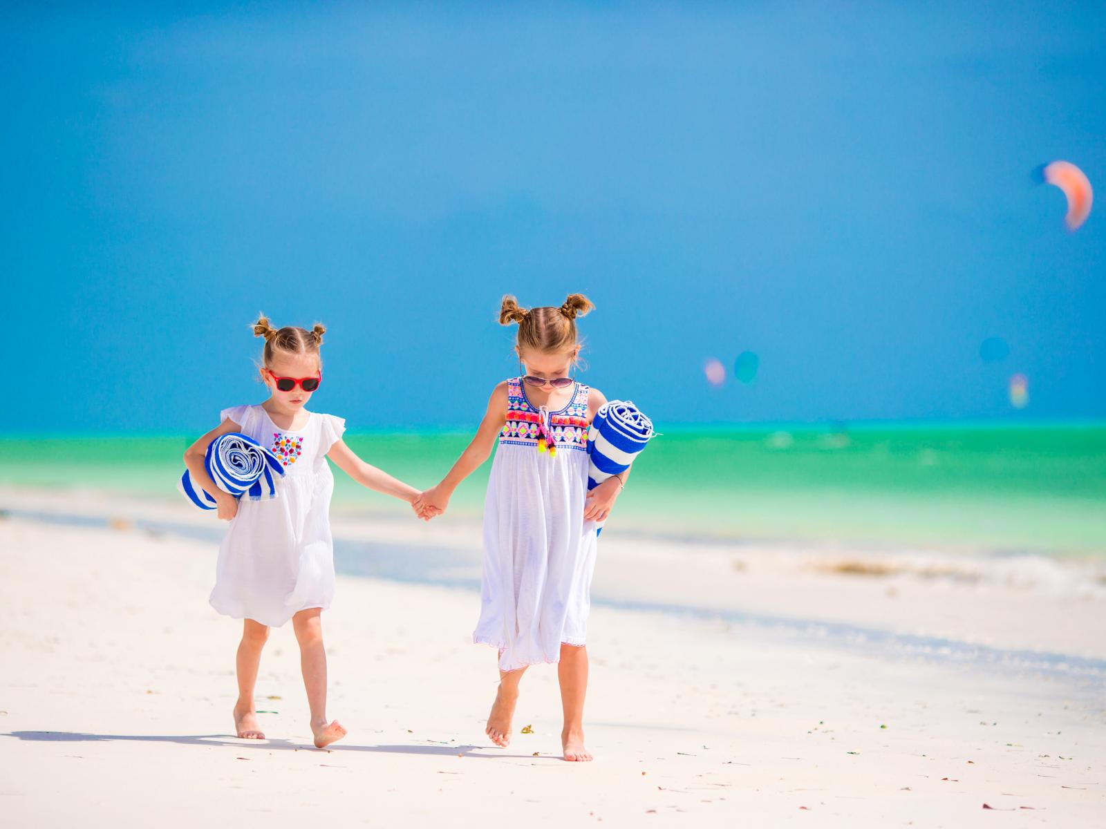Wallpaper Two little girls are walking along the sand
