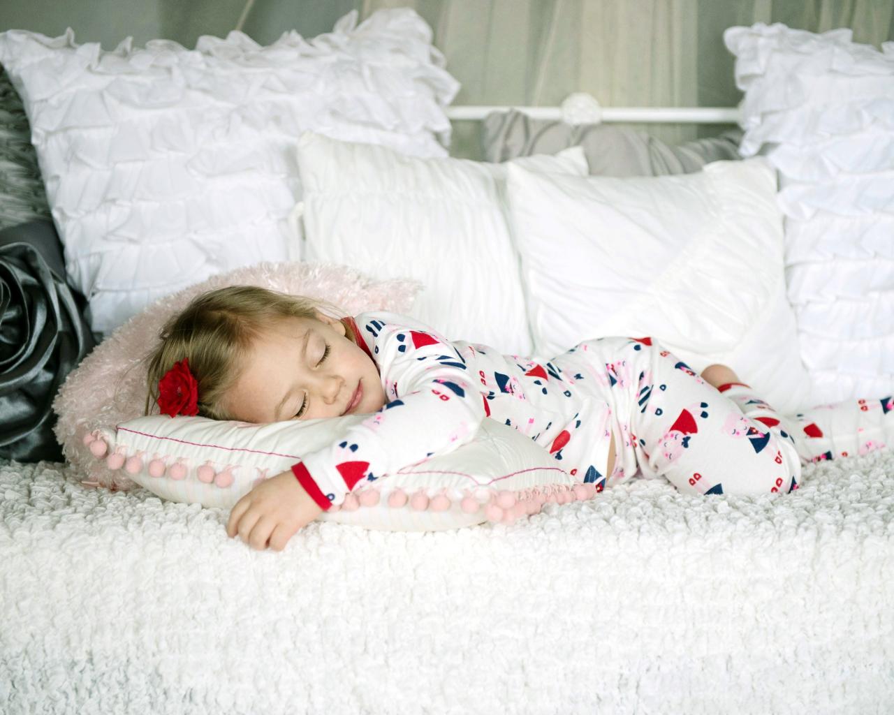 Wallpaper Little girl is sleeping on the pillow