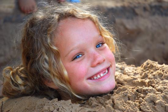 Wallpaper Little smiling girl playing in the sand