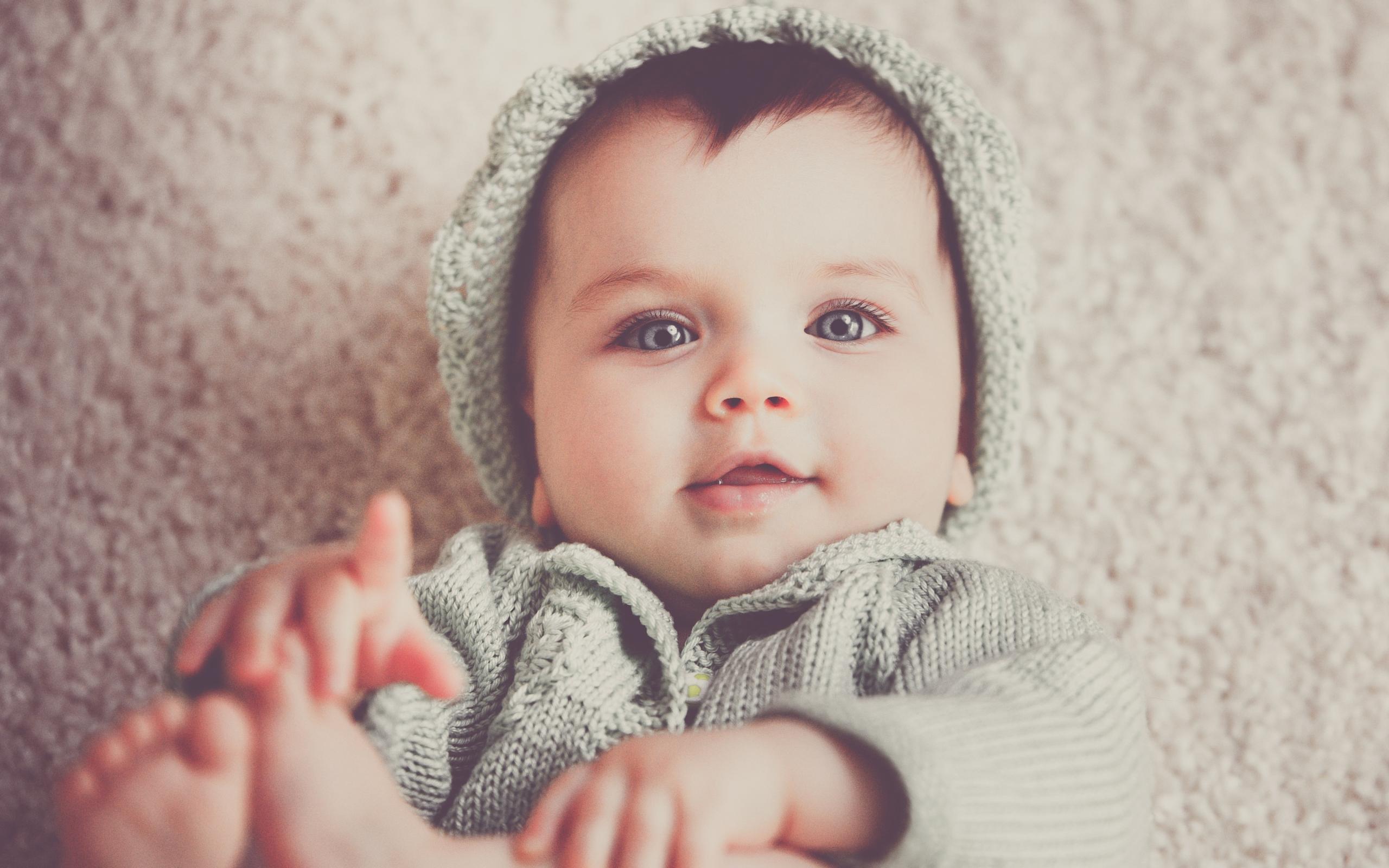 Wallpaper A cute little blue-eyed kid in a knitted suit