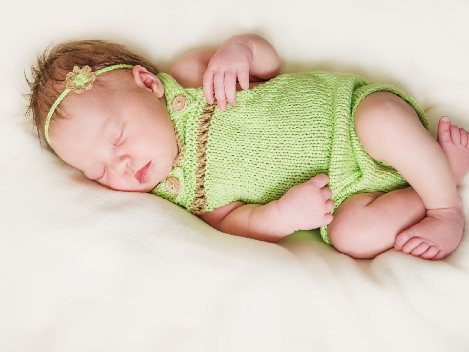 Wallpaper A sleeping baby in a knitted cap with a red bow