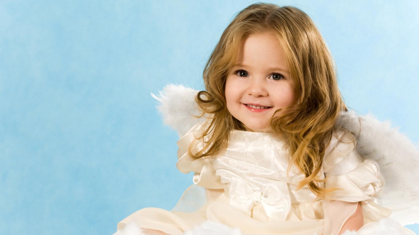 Wallpaper Smiling girl with angel wings