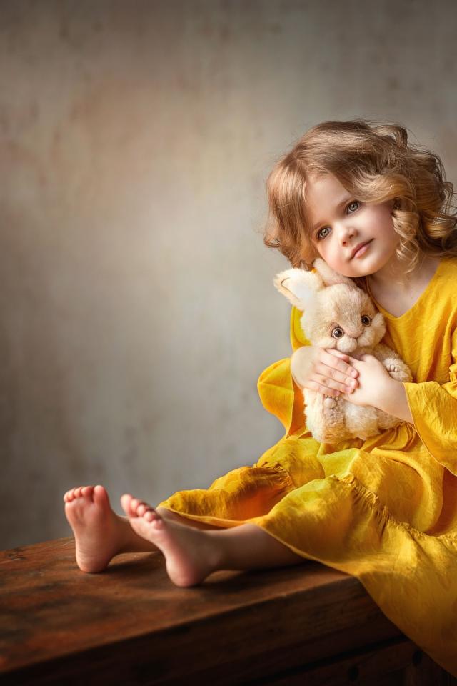 Wallpaper Beautiful little girl in yellow dress with toy
