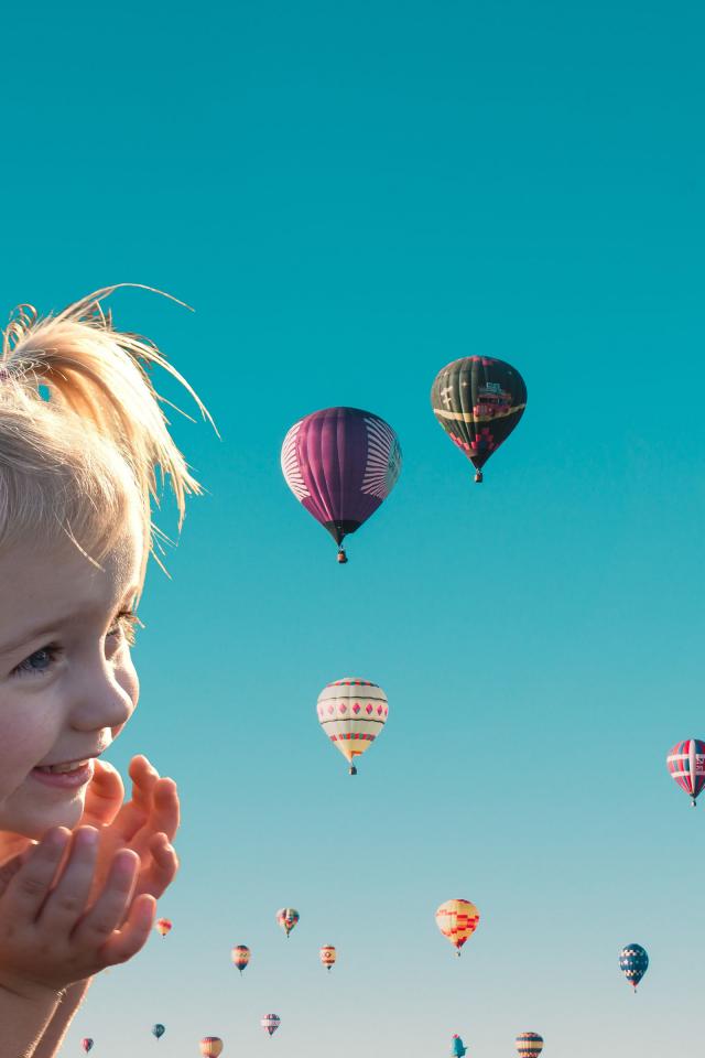 Wallpaper Little girl on the background of balloons