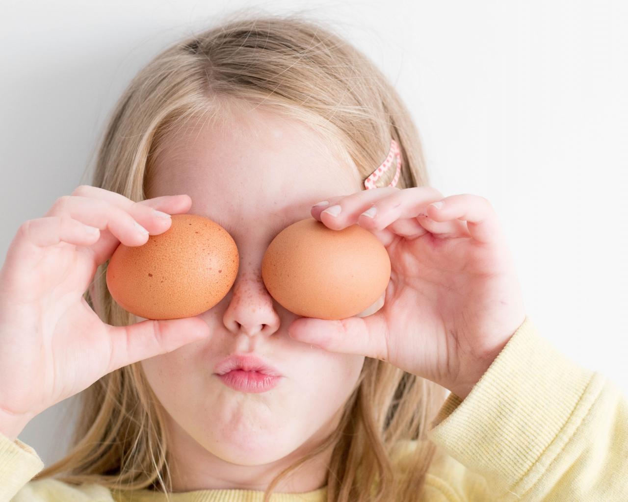 Wallpaper Little girl with eggs in hands