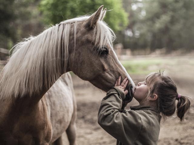 Wallpaper Beautiful girl kisses a horse under a beautiful sky