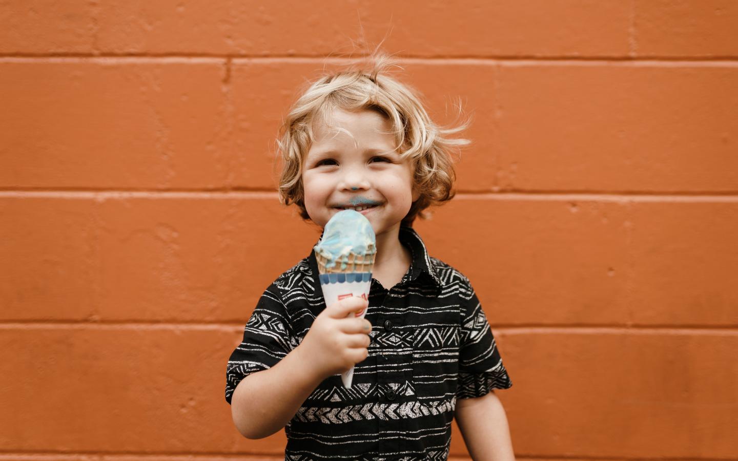 Wallpaper Little boy with ice cream in the hands near the wall
