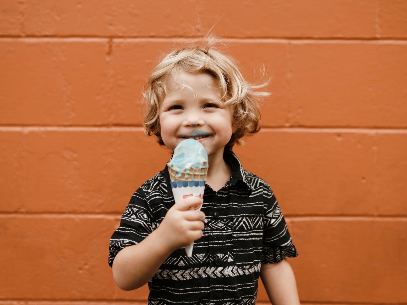 Wallpaper Little boy with ice cream in the hands near the wall