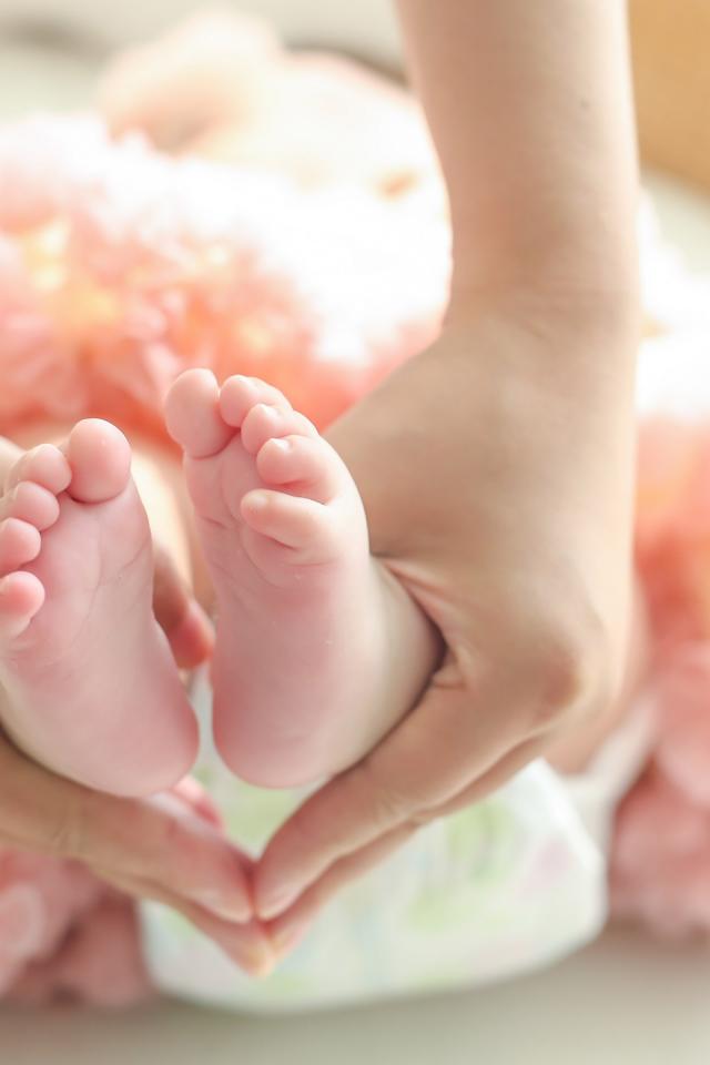 Wallpaper Small legs of the newborn in the palms of the mother