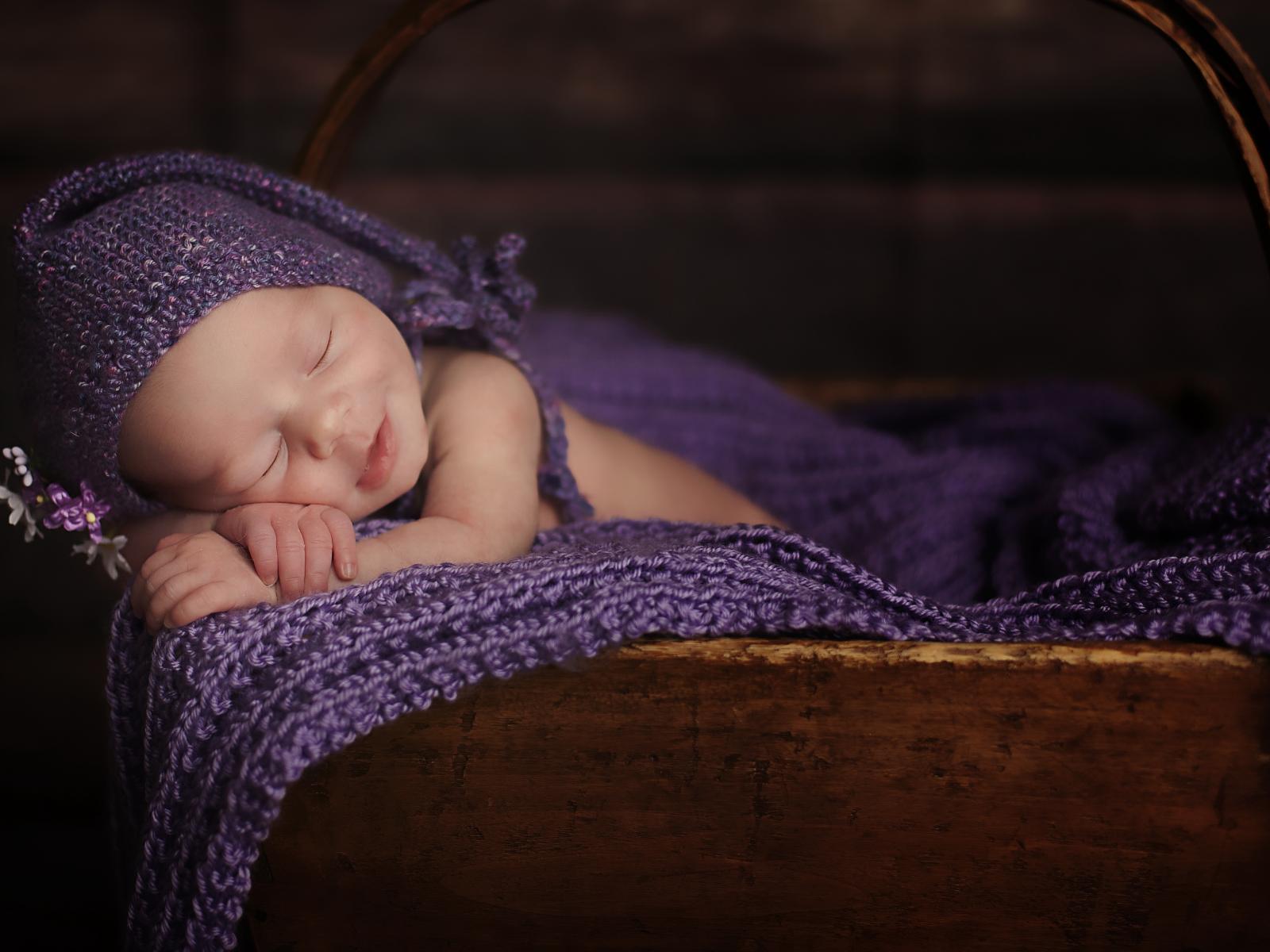 Wallpaper Newborn baby smiling in his sleep