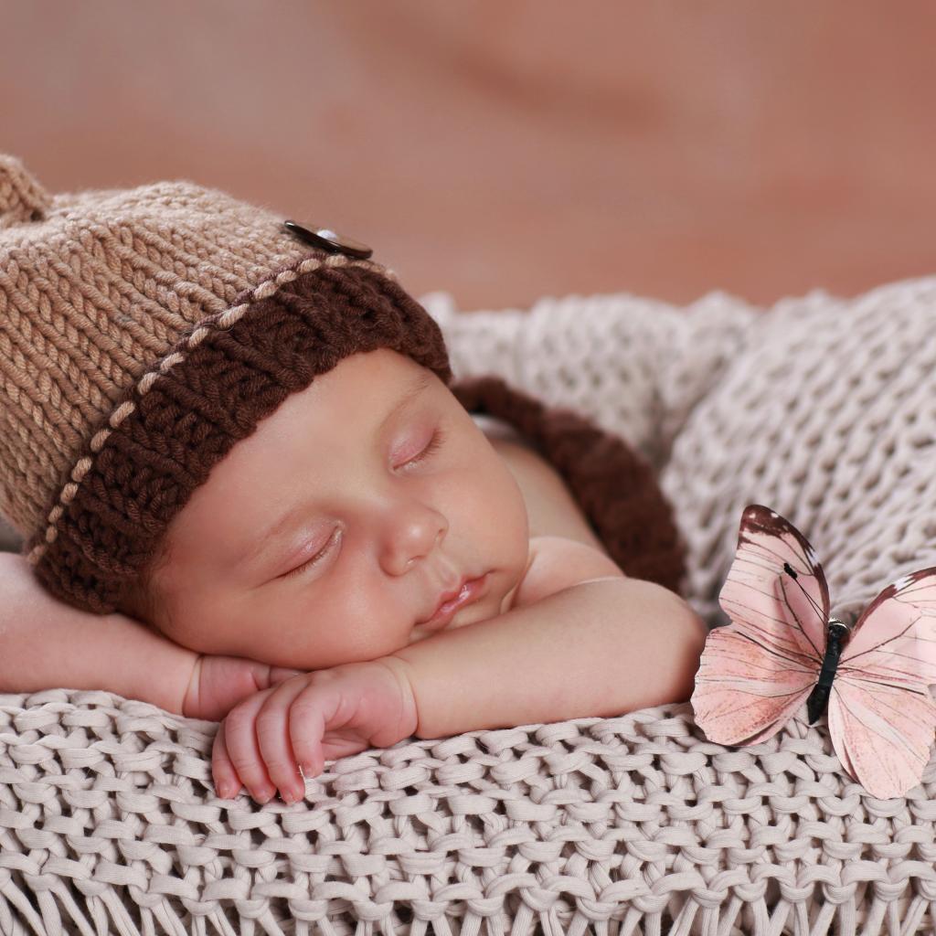 Wallpaper Cute sleeping baby in a brown knitted hat