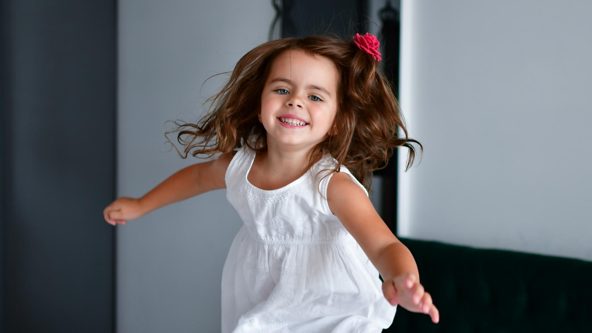» Wallpaper Little cheerful girl in a white dress