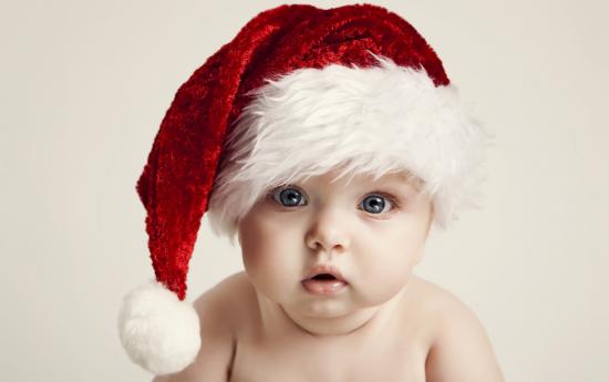 Wallpaper Blue-eyed baby in a red Santa Claus hat
