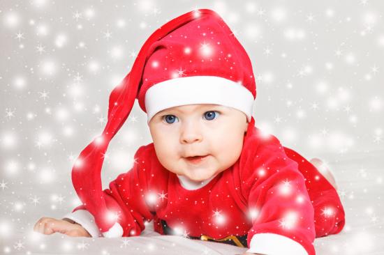Wallpaper Cute blue-eyed baby in a red New Year`s suit