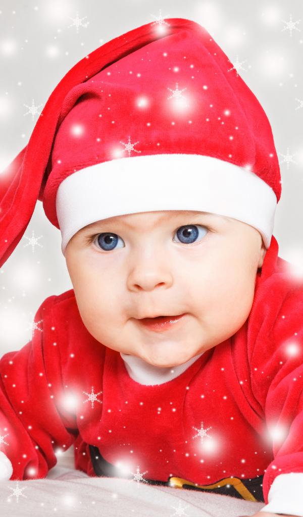 Wallpaper Cute blue-eyed baby in a red New Year`s suit