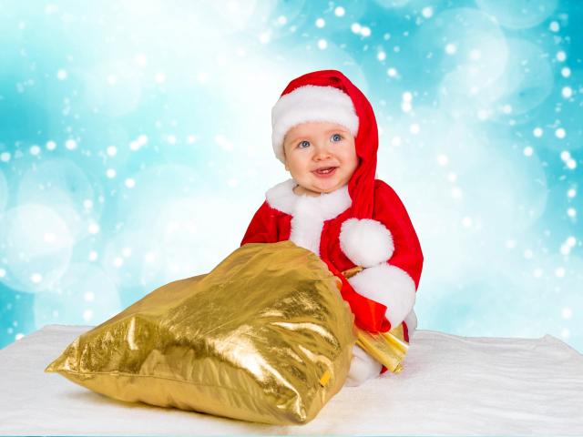 Wallpaper Smiling child dressed as Santa Claus with bag