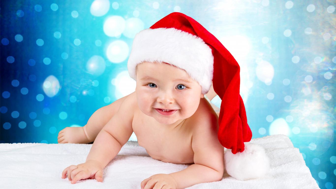 Wallpaper Little blue-eyed child in a red Christmas hat
