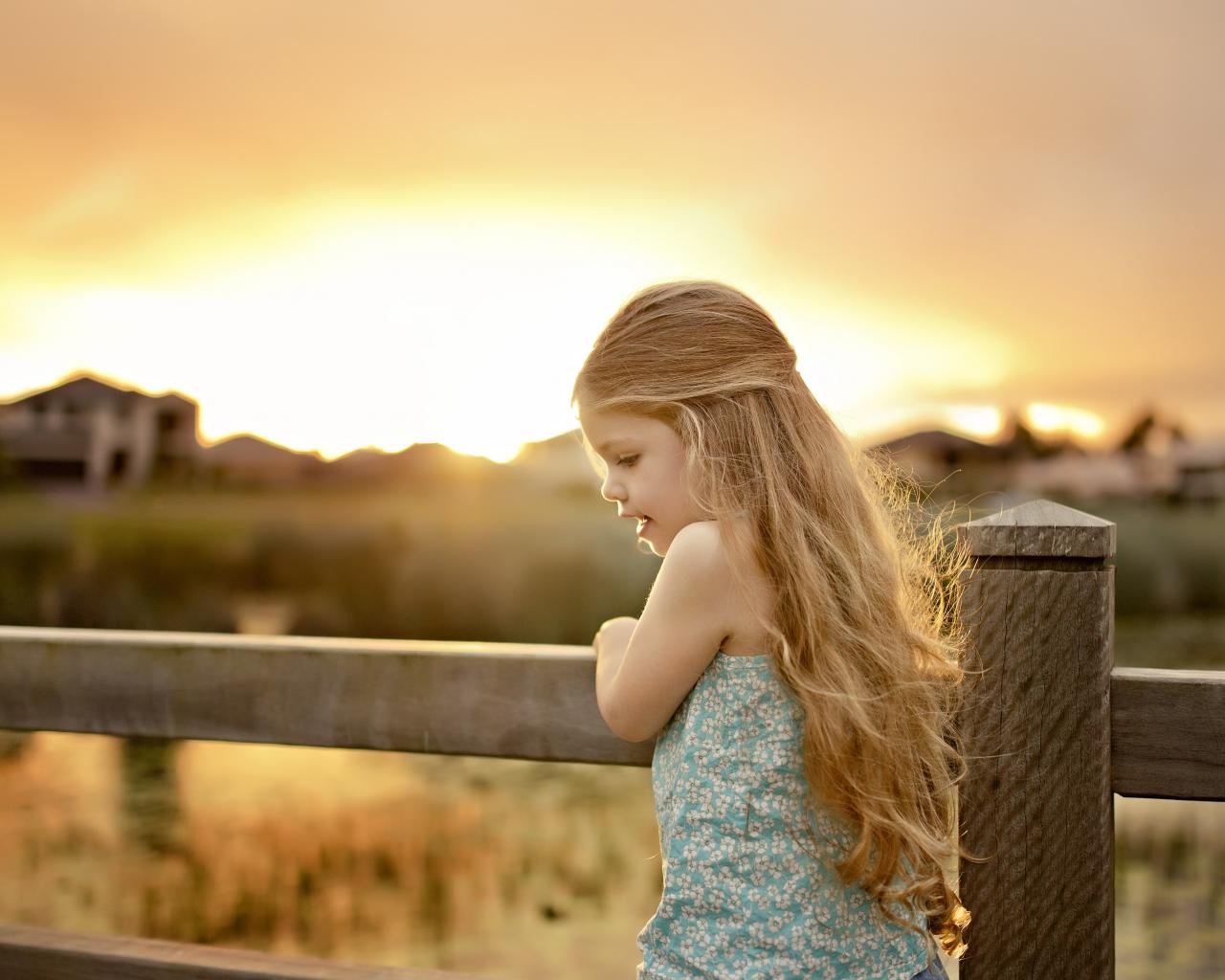 Wallpaper Beautiful young girl in a wedding dress near the water at sunset