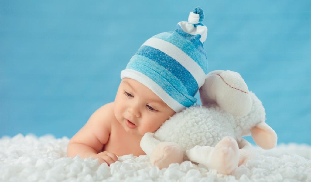 Wallpaper Little boy in a blue hat with a toy