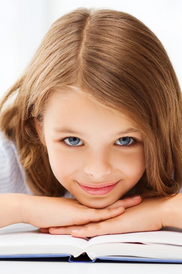 Wallpaper Little blue-eyed girl schoolgirl with a book