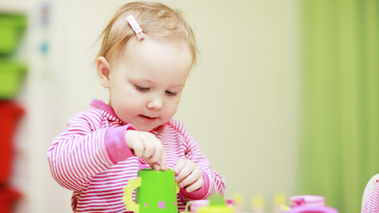Wallpaper Little girl playing with dishes
