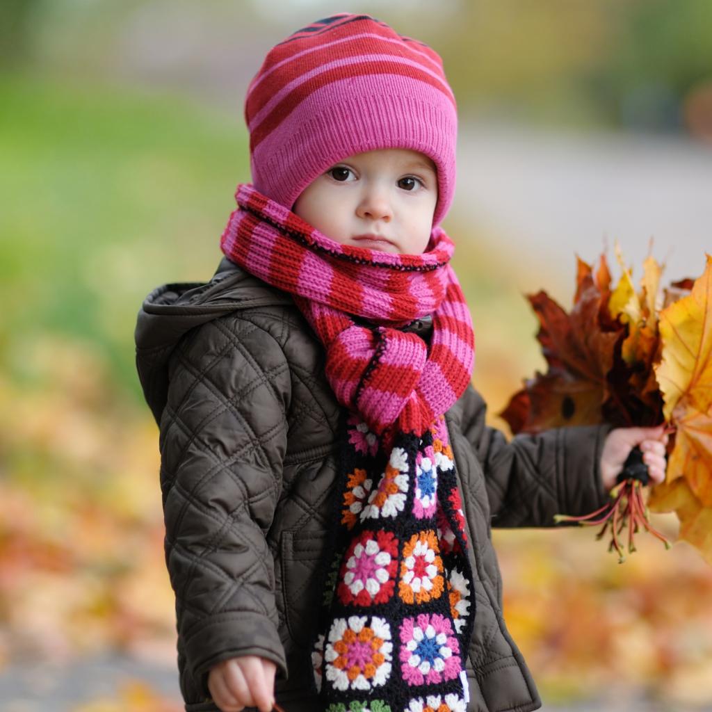 Wallpaper Little girl in a pink hat with leaves in hand