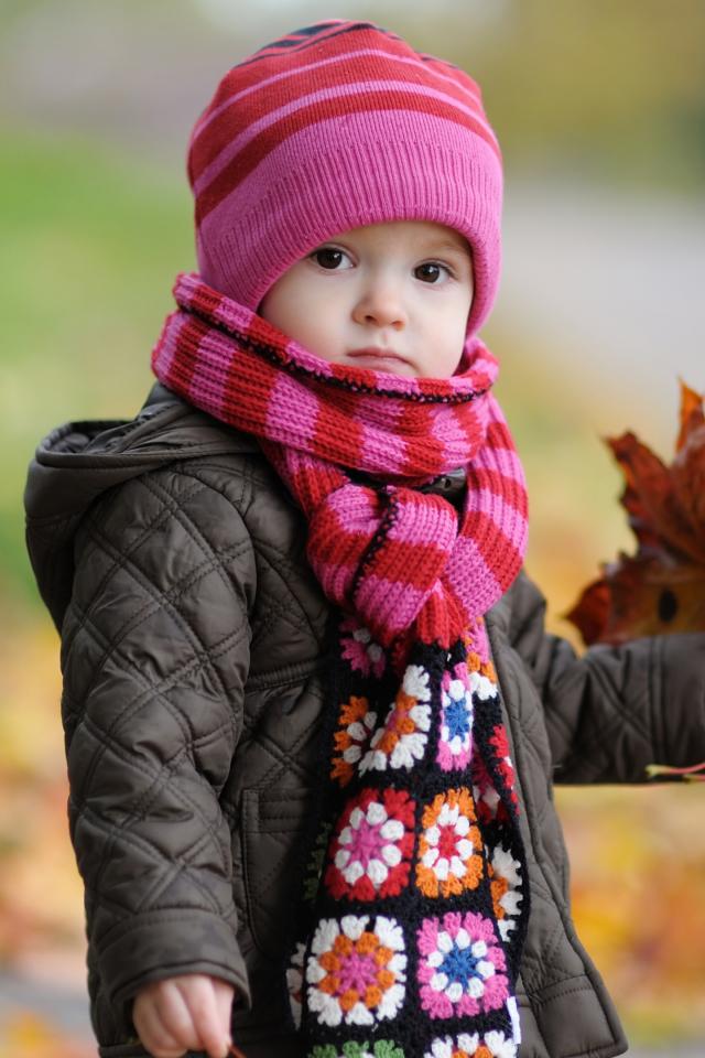Wallpaper Little girl in a pink hat with leaves in hand