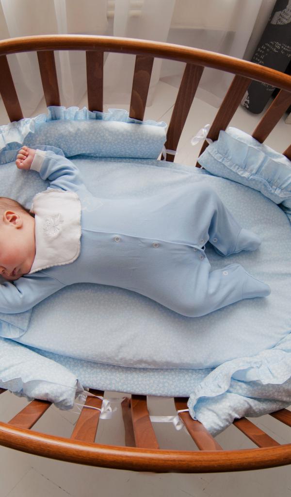 Wallpaper Little baby in a crib on wheels
