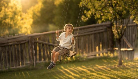 Wallpaper Little boy riding on a swing in summer