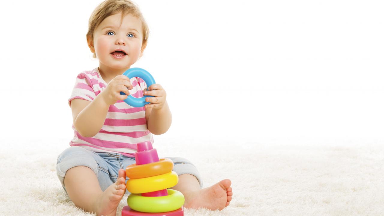 Wallpaper Blue-eyed little boy with a toy on a white background