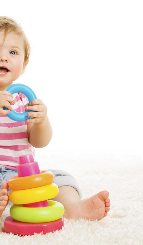 Wallpaper Blue-eyed little boy with a toy on a white background