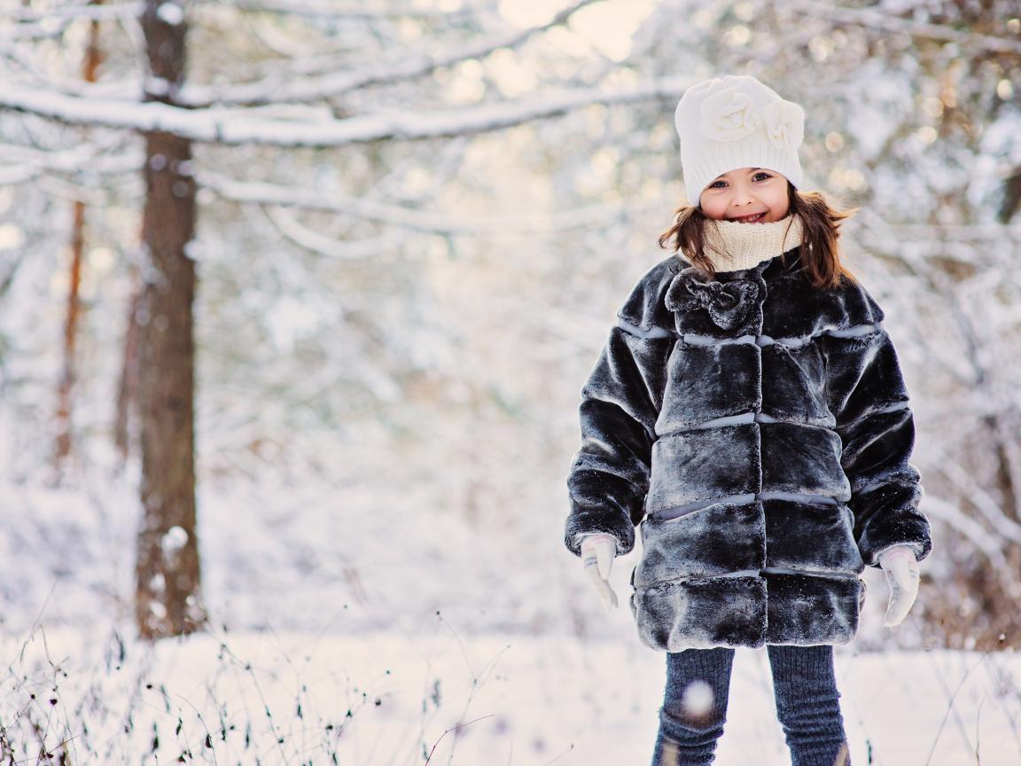 Wallpaper Cute little girl in winter fur coat