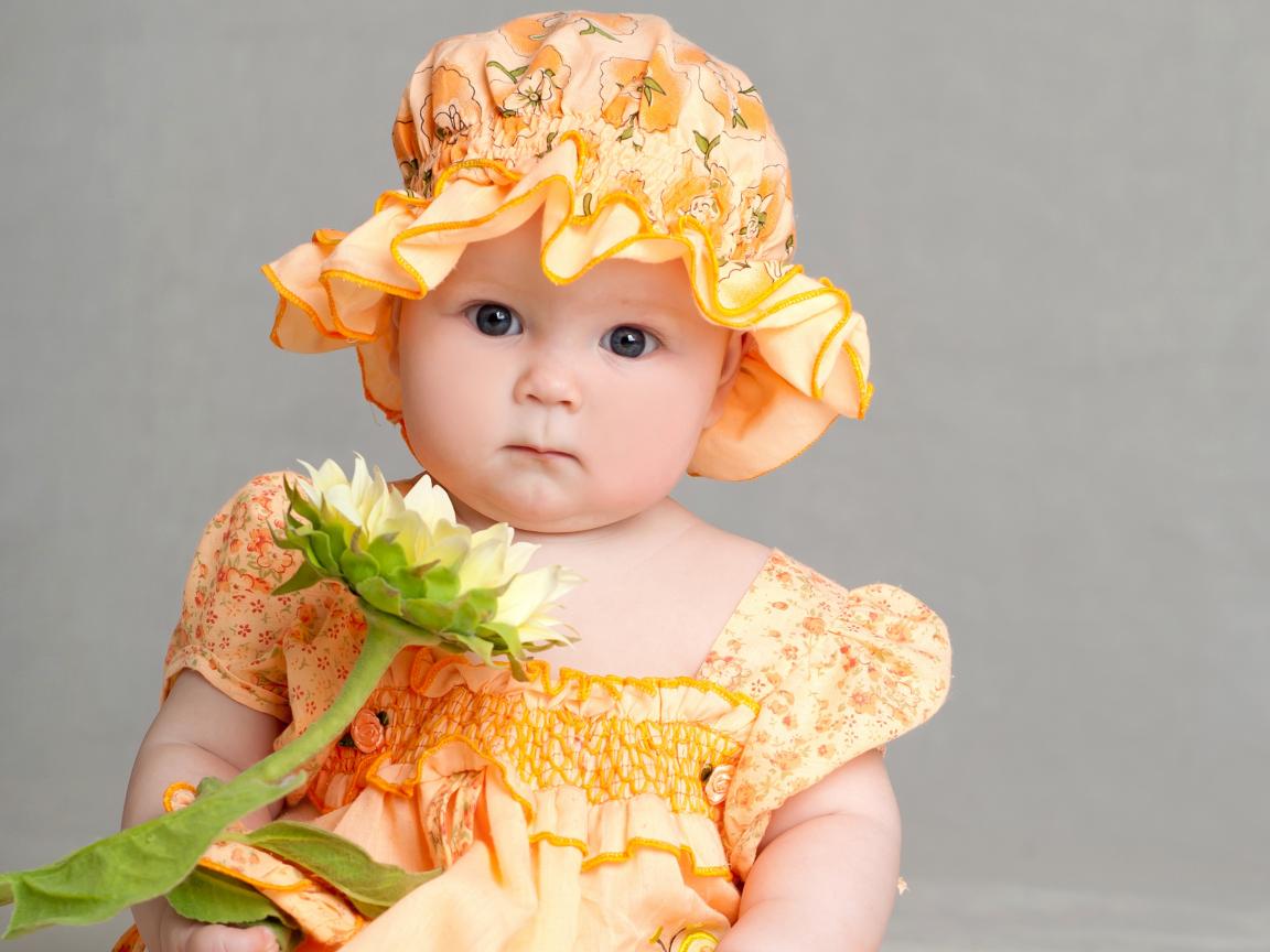 Wallpaper Little girl in beautiful dress with flower